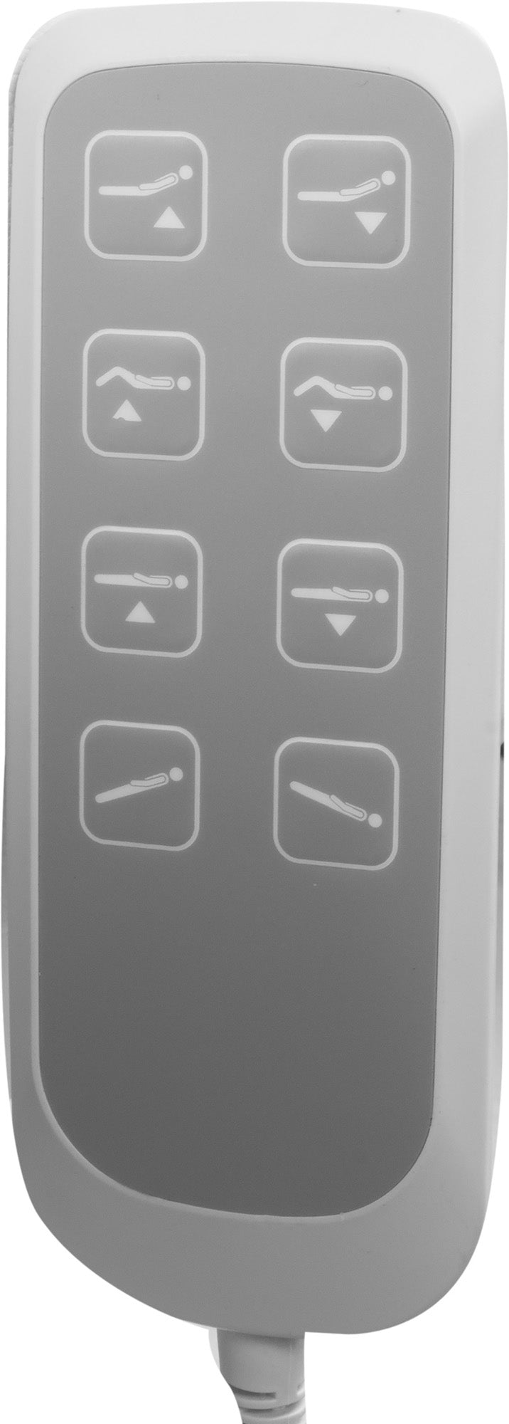 - Höhe, Neigung der Rückenlehne sowie negative Neigung des Sitzes und Beinauflagen sind über 4 kraftvollen Motoren verstellbar