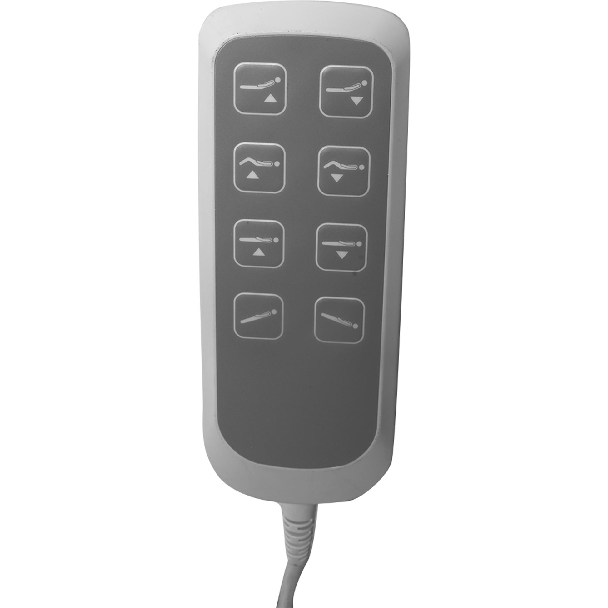 - Höhe, Neigung der Rückenlehne sowie negative Neigung des Sitzes und Beinauflagen sind über 4 kraftvollen Motoren verstellbar