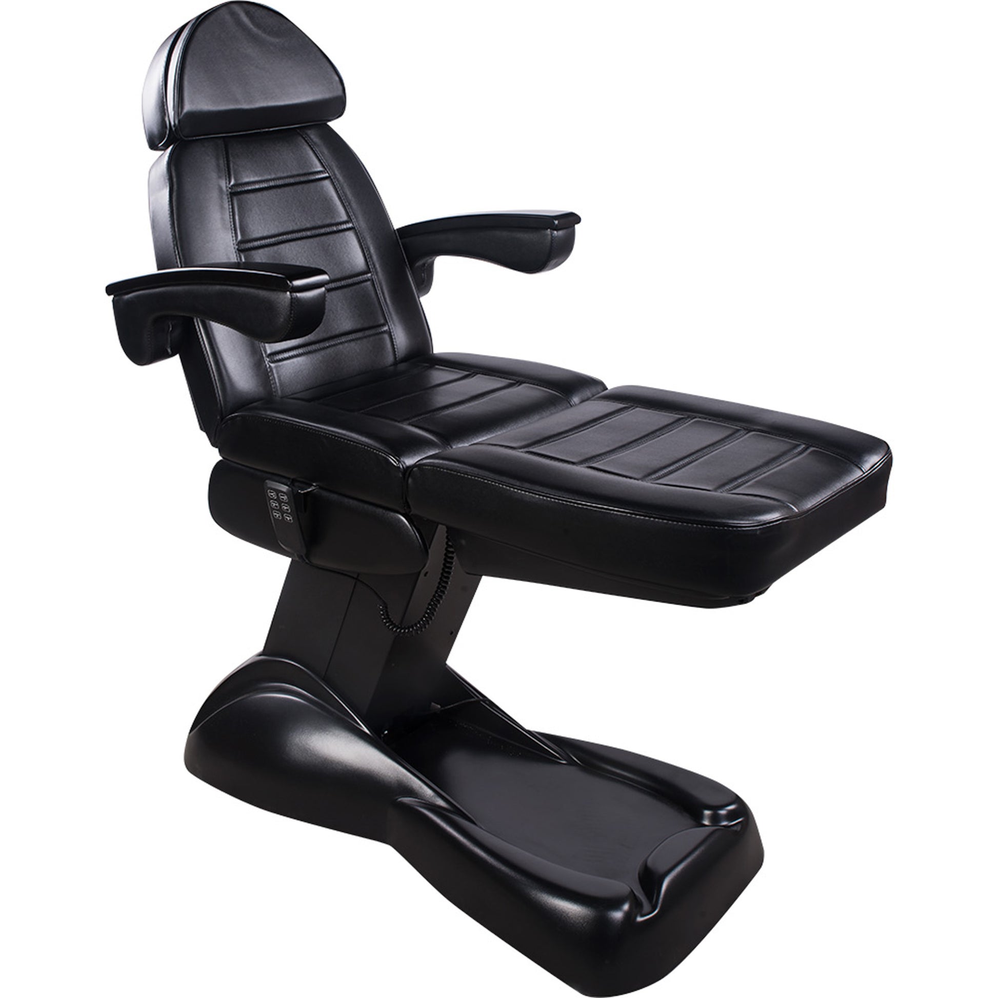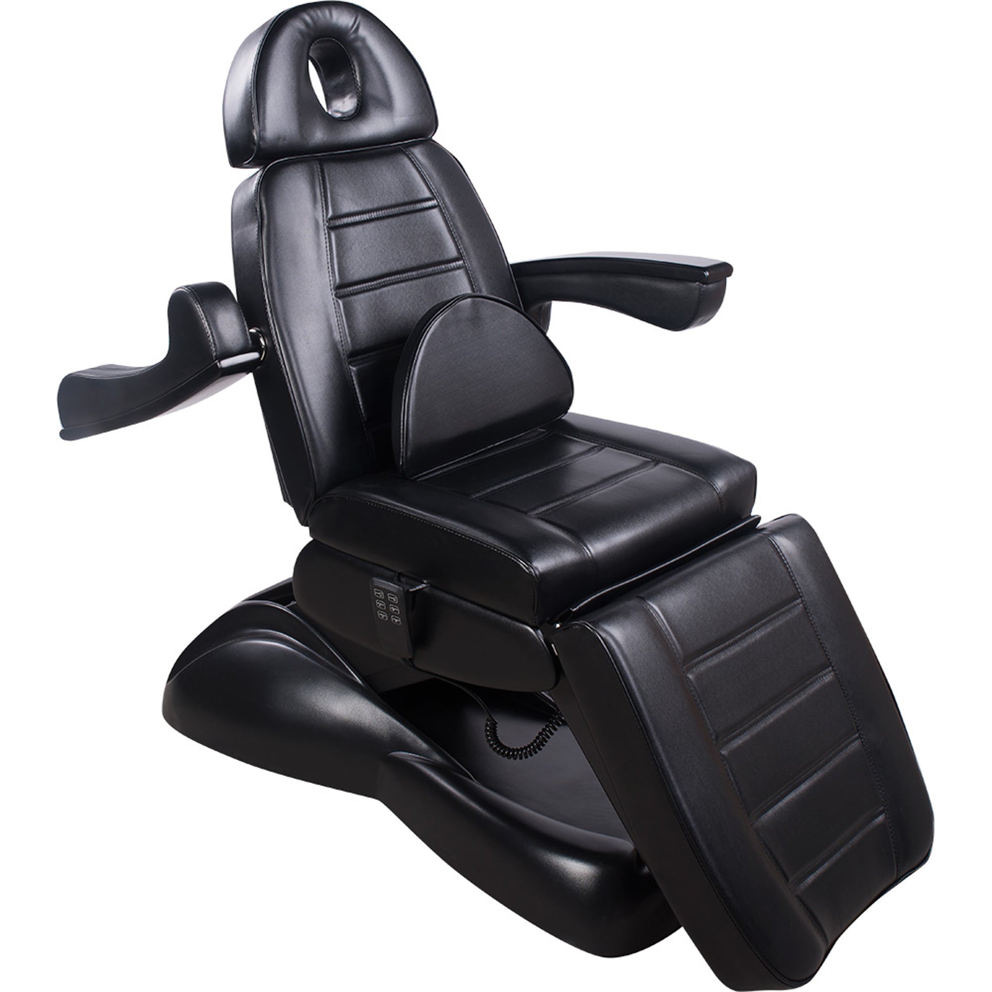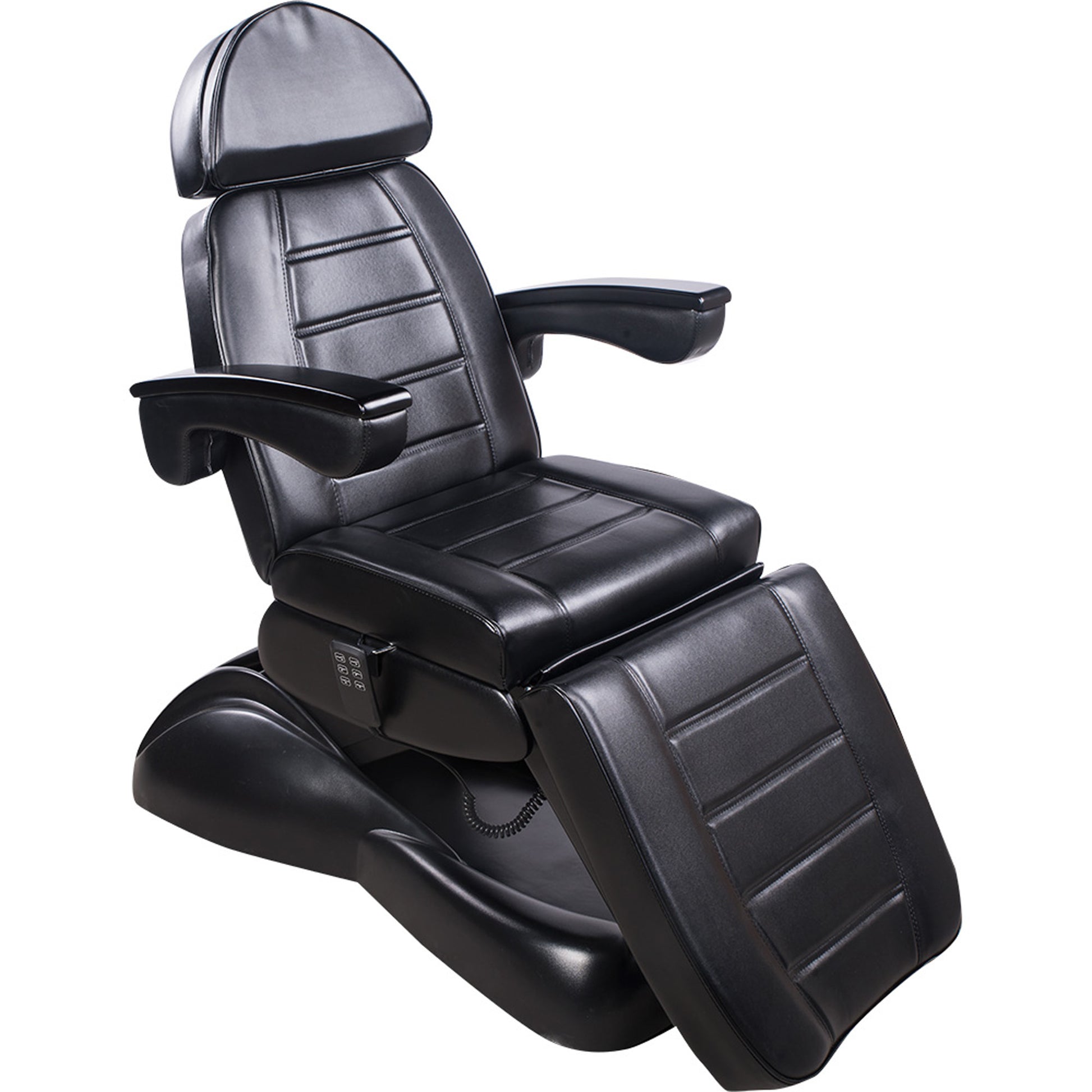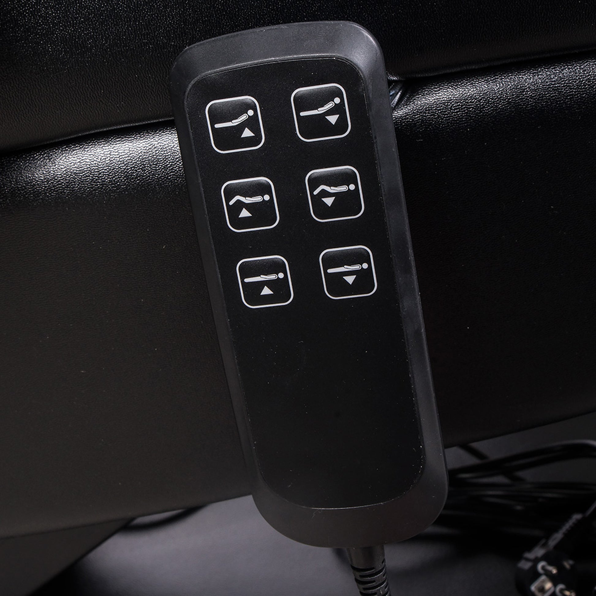 - Höhe, Neigung der Rückenlehne sowie die Beinauflagen sind über 3 kraftvollen Motoren per Handschalter verstellbar
