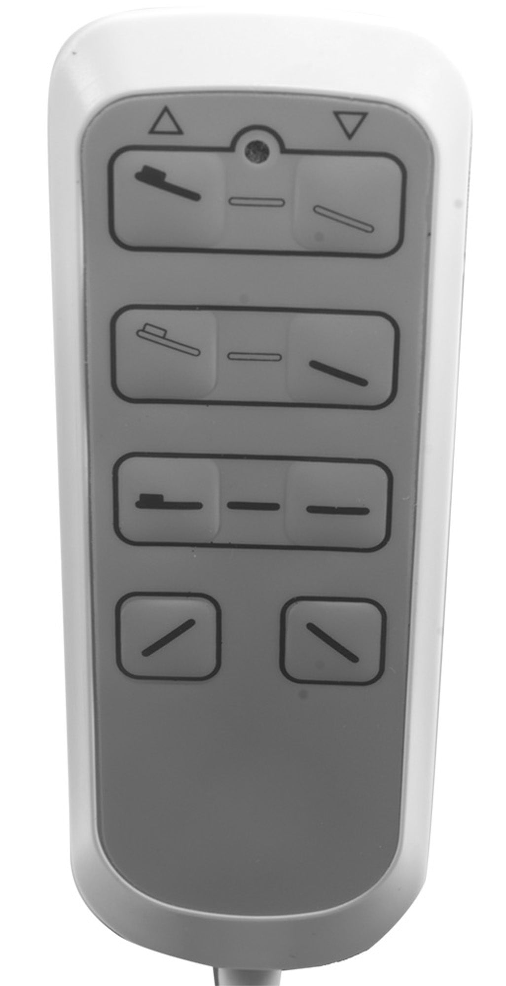 - Höhe, Neigung der Rückenlehne sowie negative Neigung des Sitzes und Beinauflage sind über 4 kraftvollen Motoren verstellbar