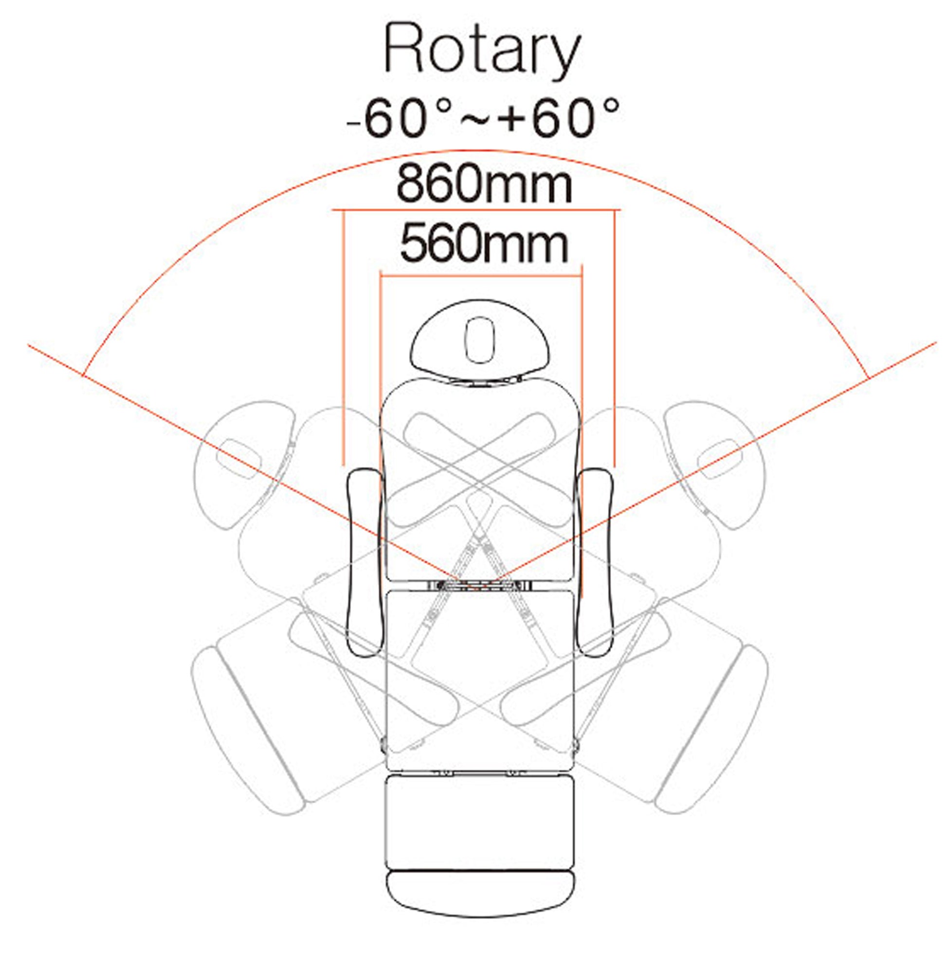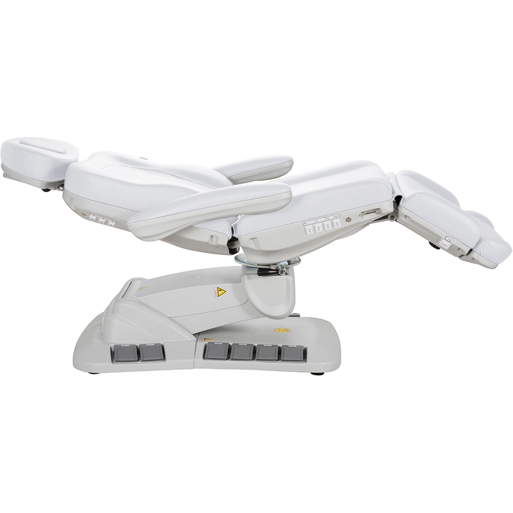 - Höhe, Neigung der Rückenlehne und Beinauflage sowie negative Neigung des Sitzes sind über 4 kraftvollen Motoren per Fußschalter verstellbar