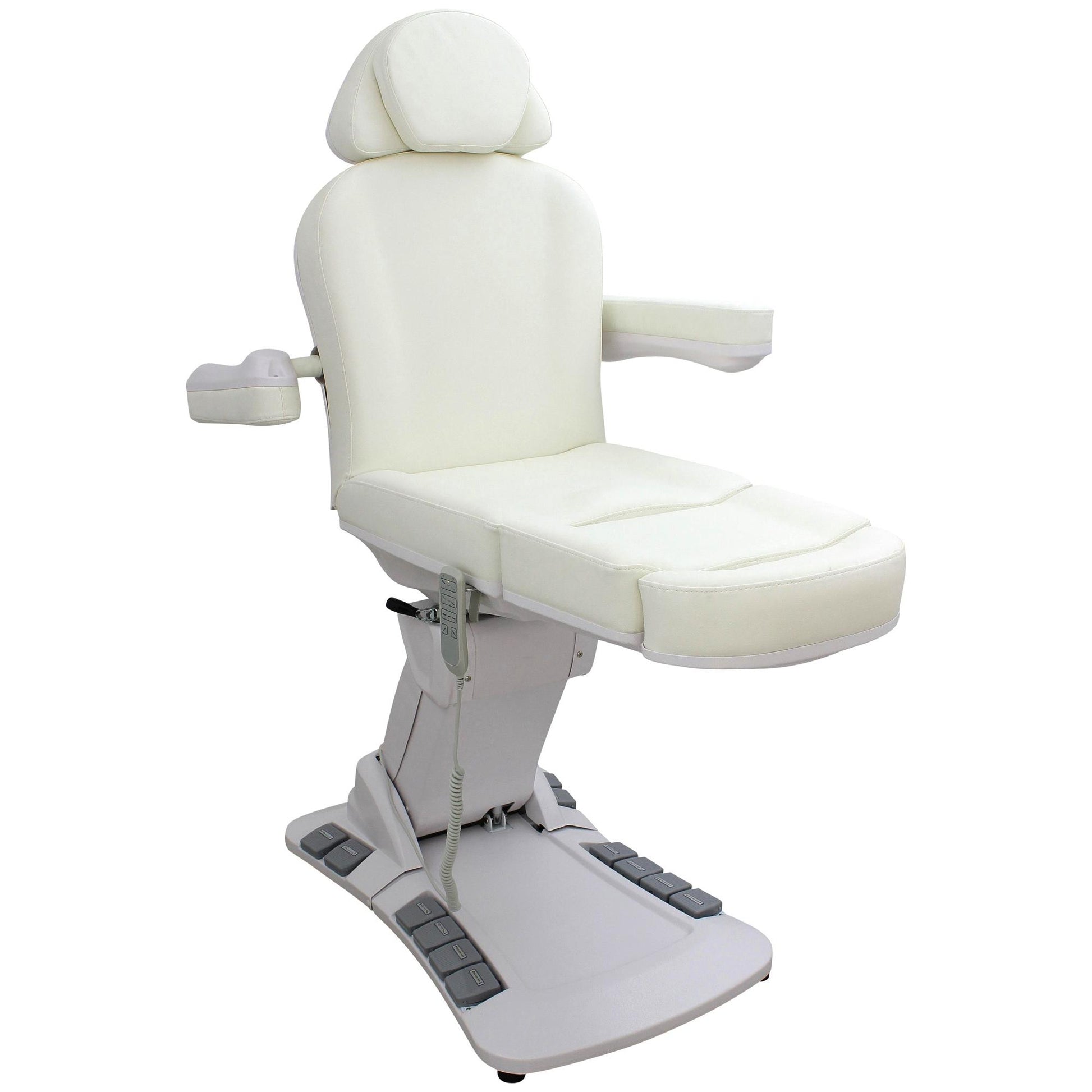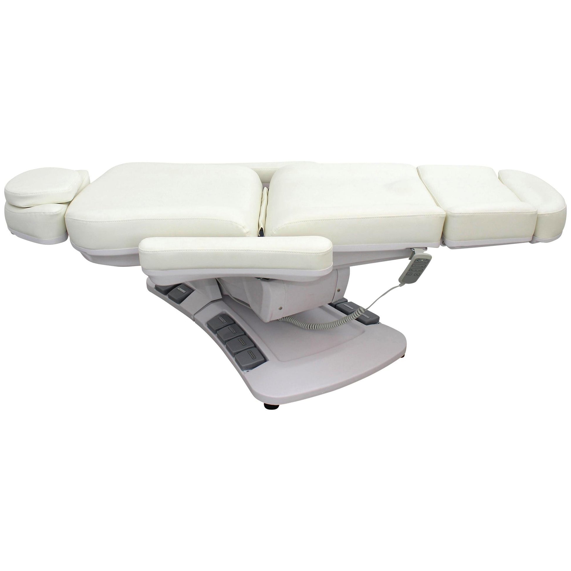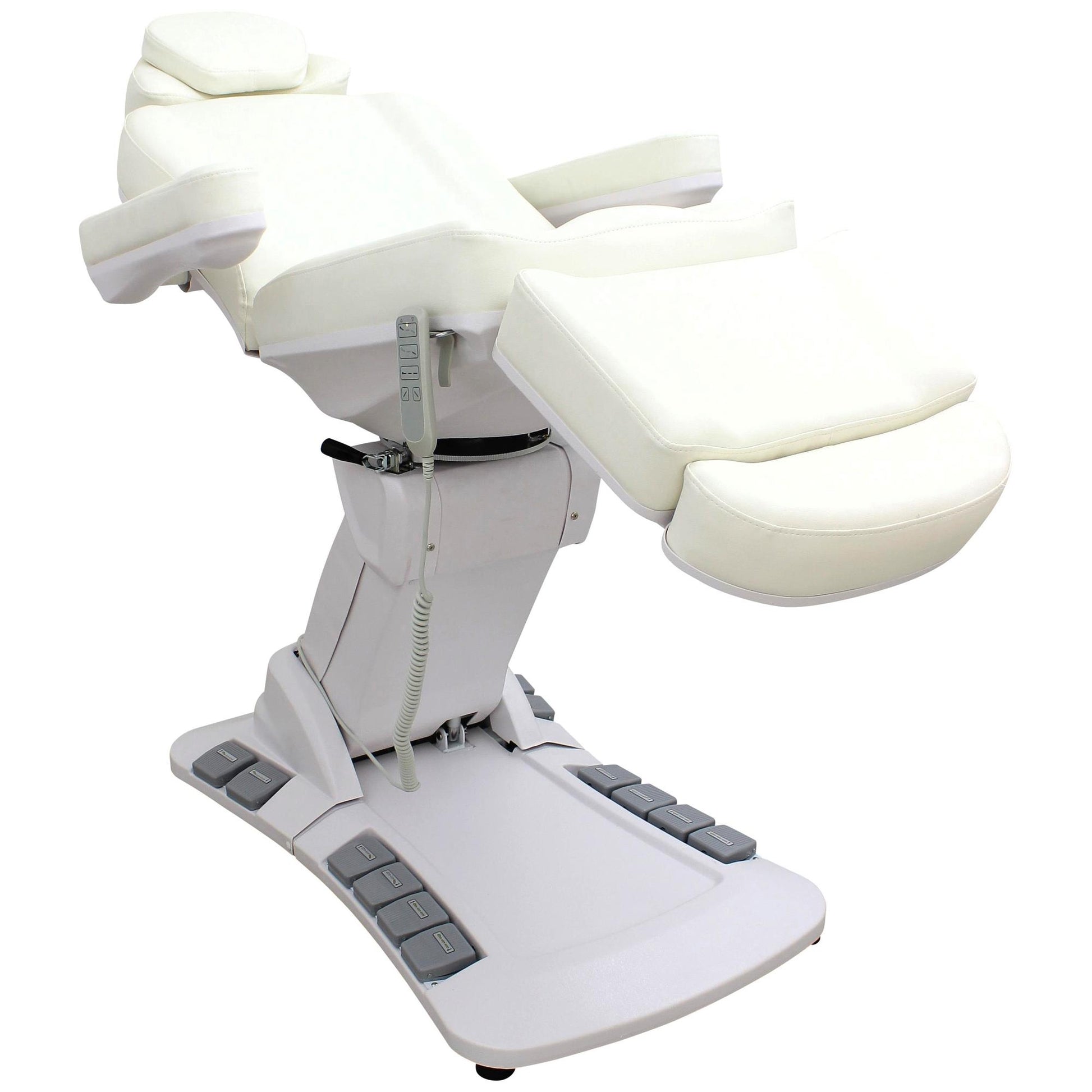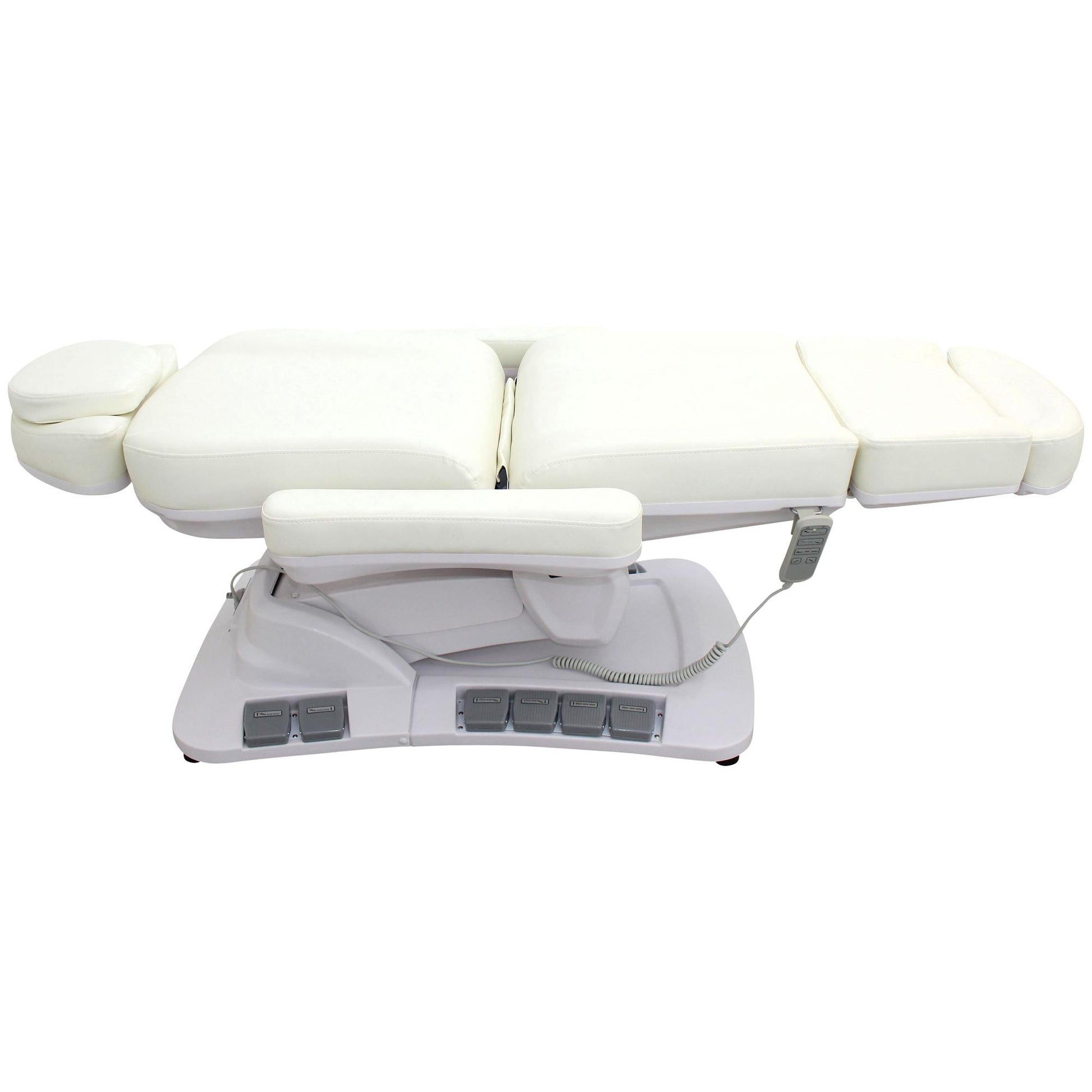 Die Behandlungsliege Modell L006625 überzeugt durch ihre moderne Ausstattung, hohe Funktionalität und edles Design in Perlweiß. Mit vier kraftvollen Motoren, 270° Drehbarkeit und einer komfortablen Polsterung ist sie die ideale Wahl für Kosmetikbereiche sowie für medizinische Behandlungen. Durch die vielseitigen Verstellmöglichkeiten bietet sie sowohl dem Anwender als auch dem Kunden maximalen Komfort und Flexibilität.