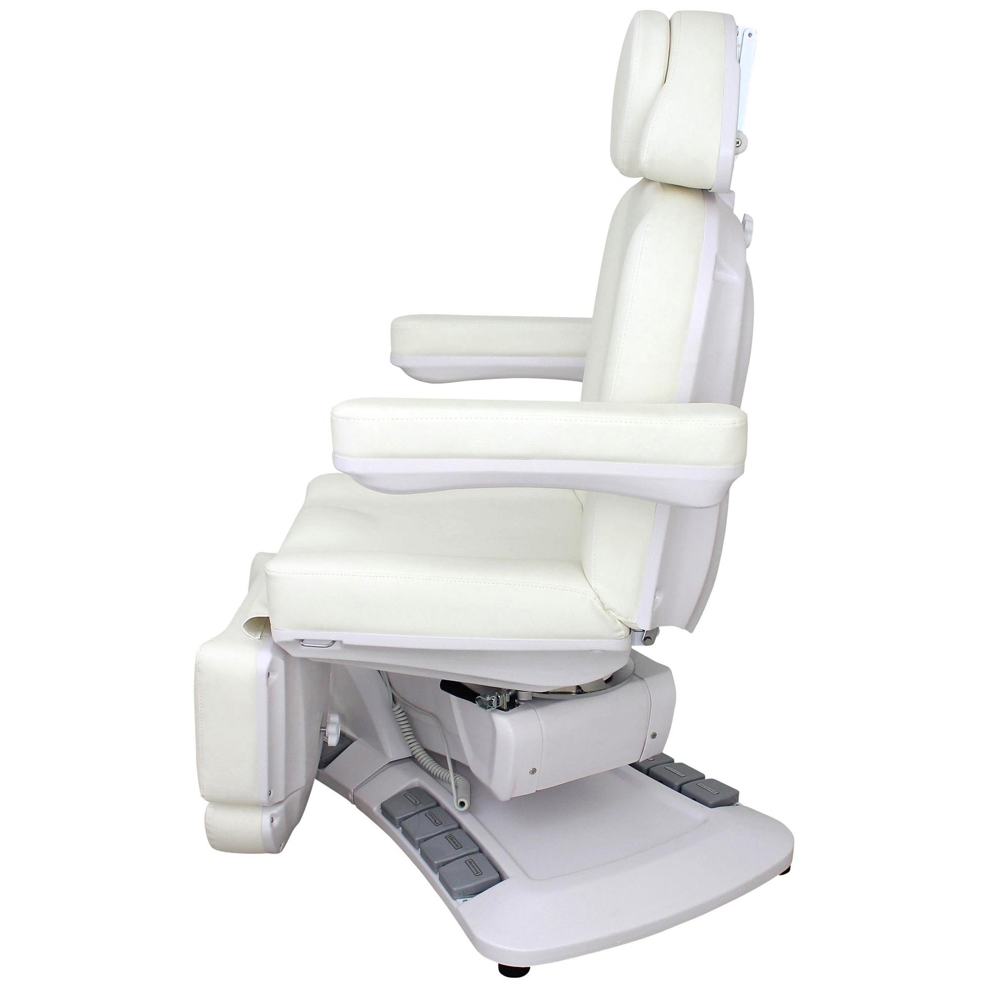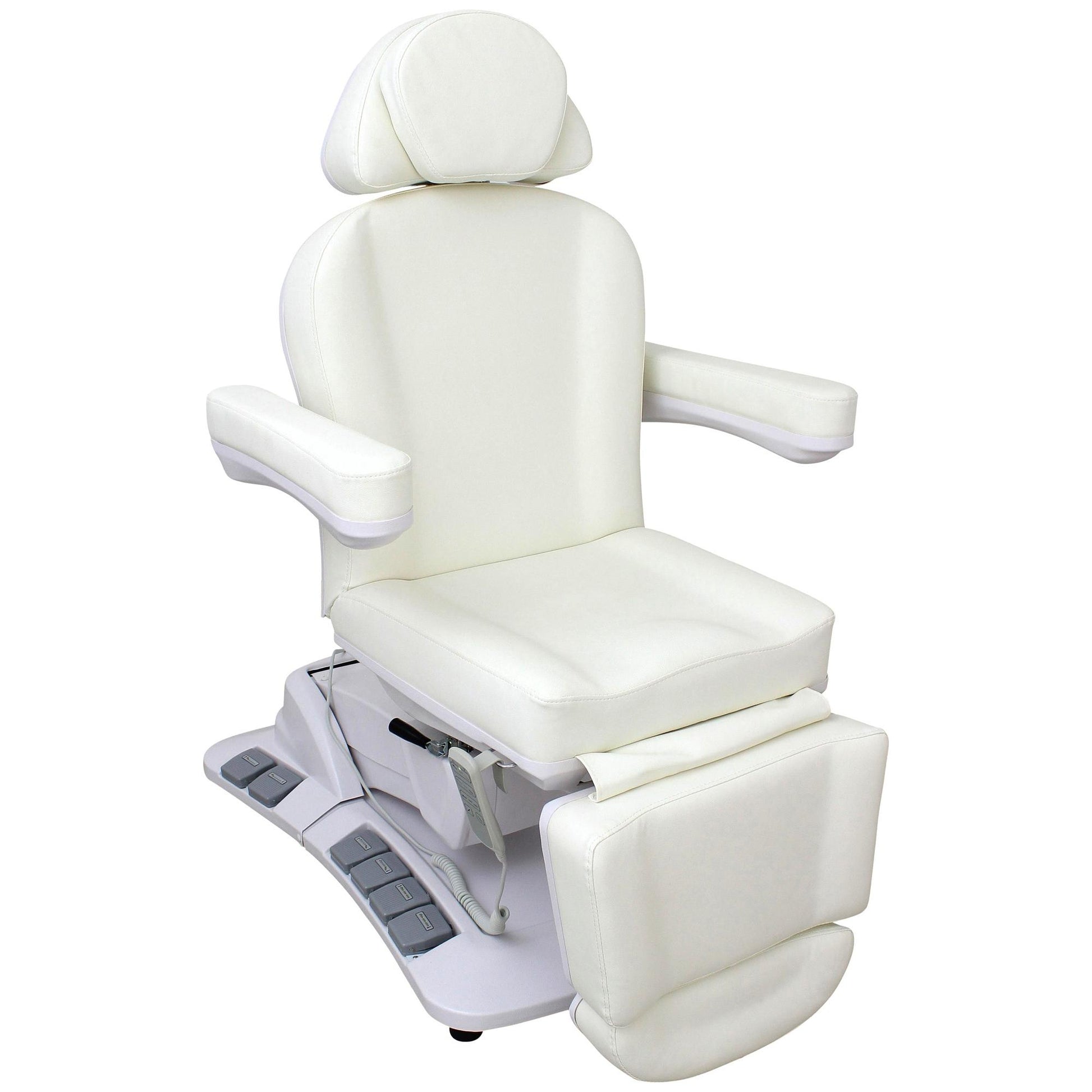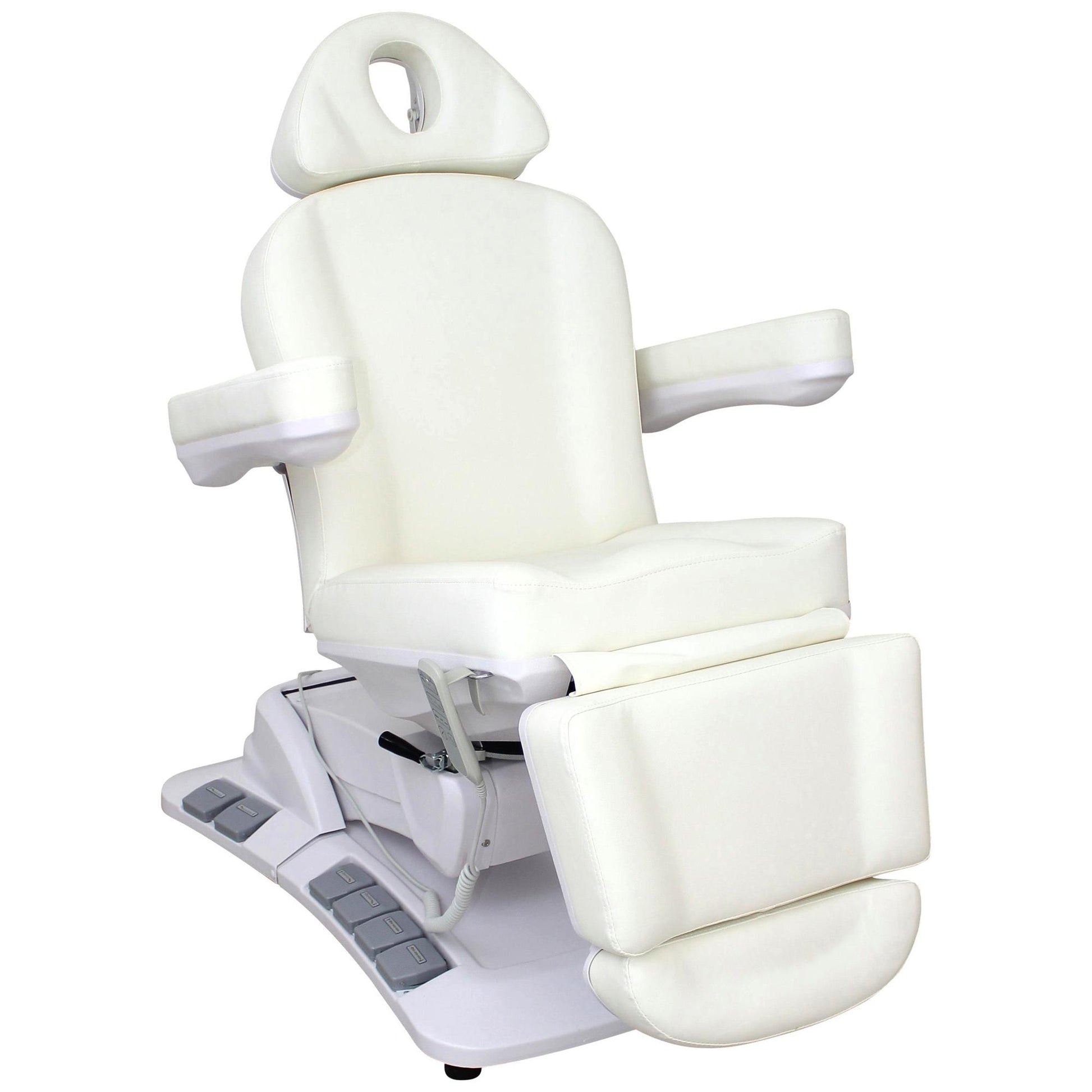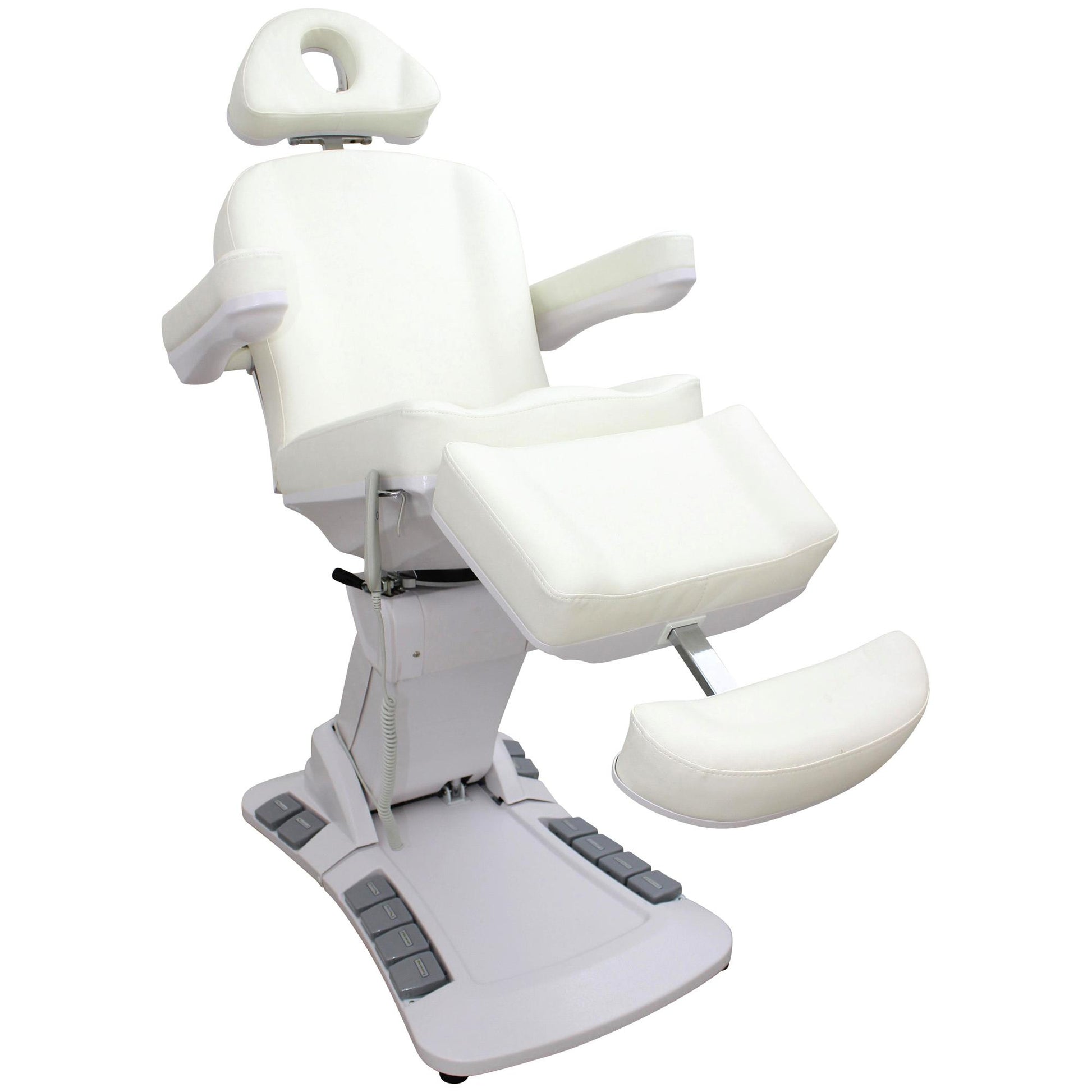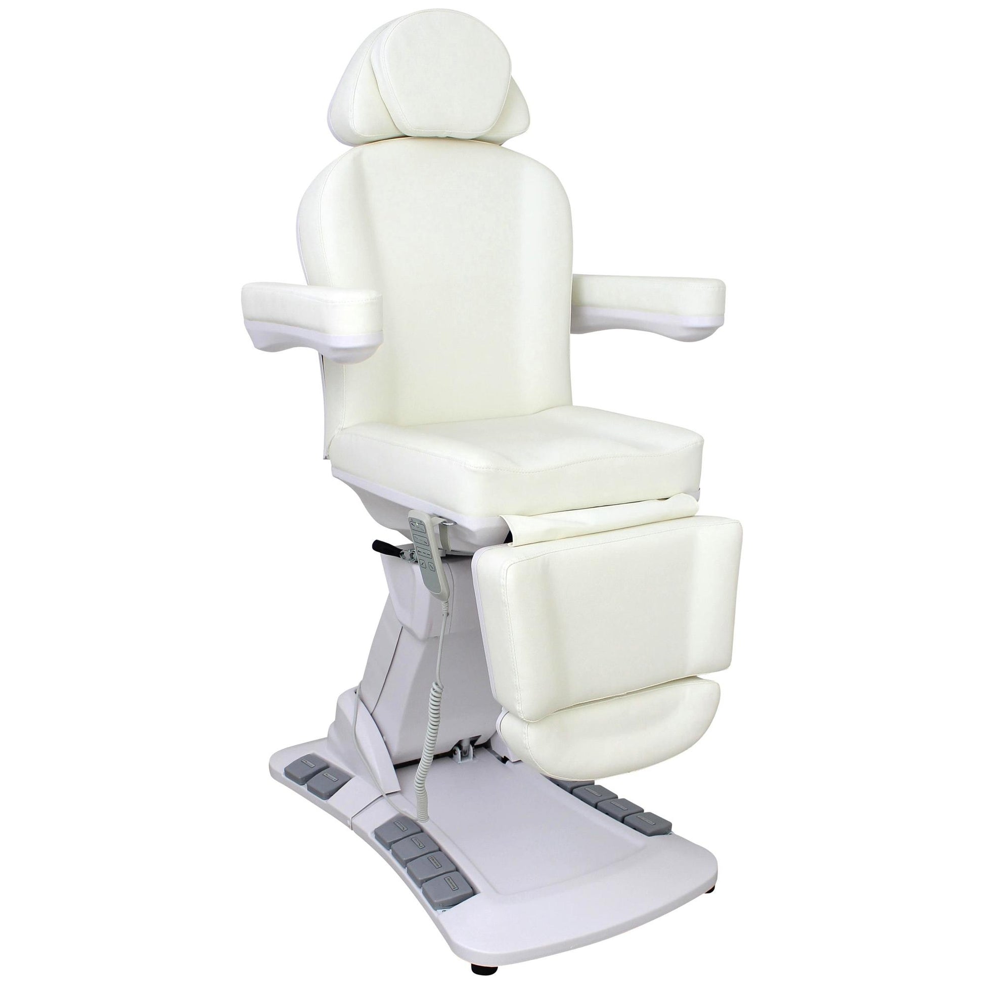Die Behandlungsliege Modell L006625 überzeugt durch ihre moderne Ausstattung, hohe Funktionalität und edles Design in Perlweiß. Mit vier kraftvollen Motoren, 270° Drehbarkeit und einer komfortablen Polsterung ist sie die ideale Wahl für Kosmetikbereiche sowie für medizinische Behandlungen. Durch die vielseitigen Verstellmöglichkeiten bietet sie sowohl dem Anwender als auch dem Kunden maximalen Komfort und Flexibilität.