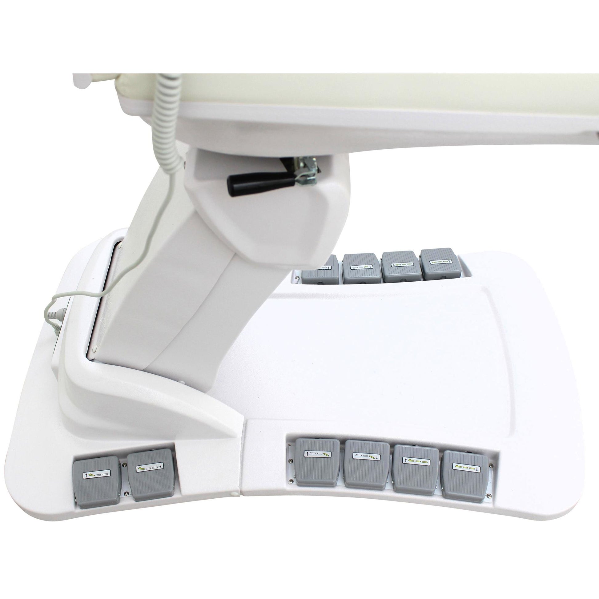 - Bequeme Fußbedienung fest integriert auf beiden Seiten
