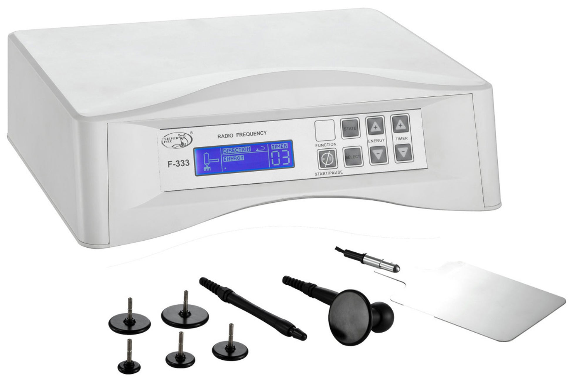 Radiofrequenzgerät für ästhetische Gesichtsbehandlungen. Das Gerät erzeugt Wärme was im Körper dazu führt, dass sich das kollagene Bindegewebe umgruppiert und strafft