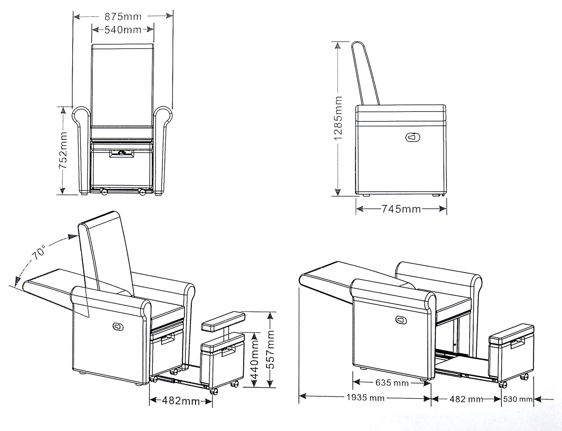 - Länge: 75 cm, mit ausgefahrene Fußstütze und ausgeklappte Rückenlehne - 242 cm